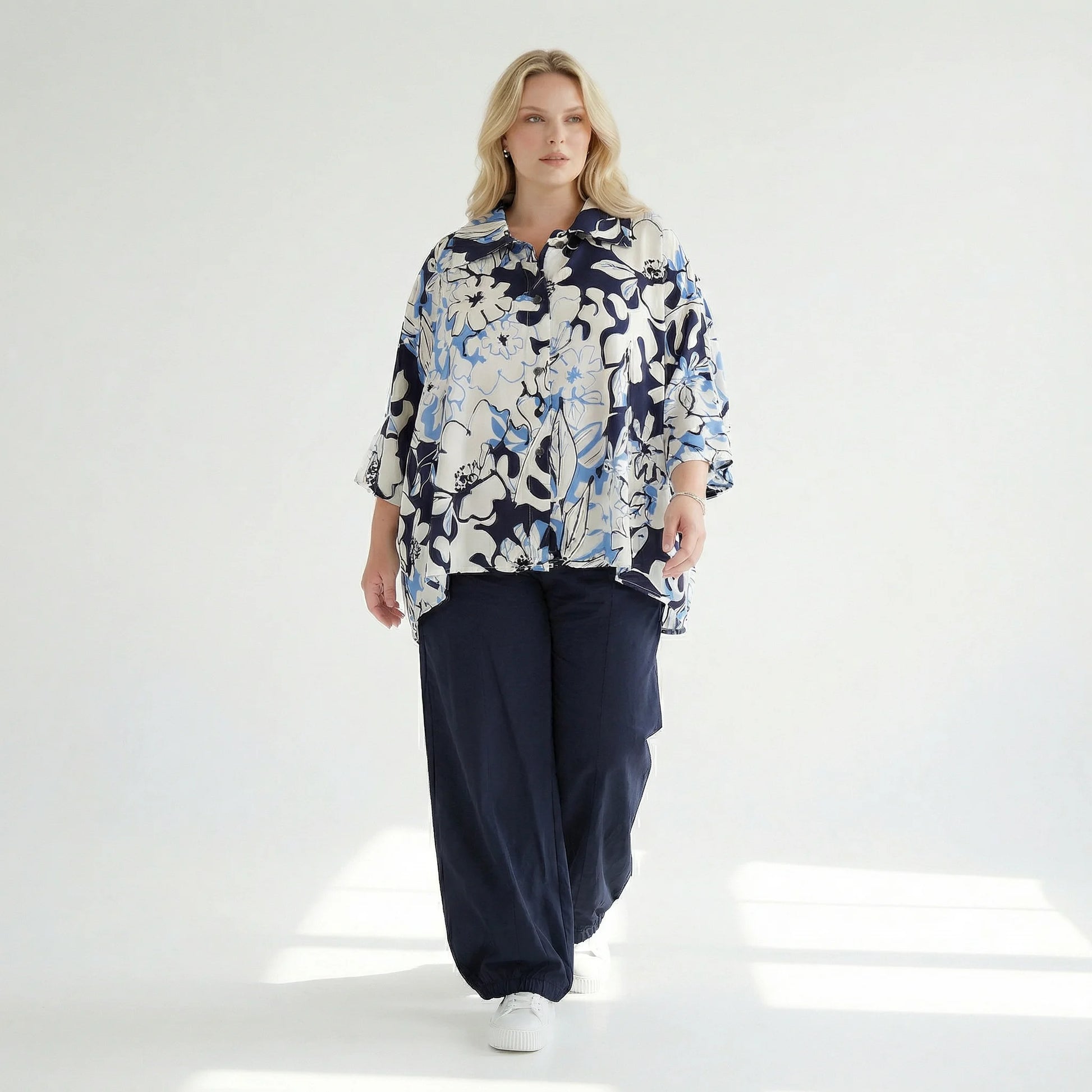 AKH Fashion Jacke in gerundeter Form, aus Viskose, 1574.07092, Weiß/Marine/Blau, Blumen